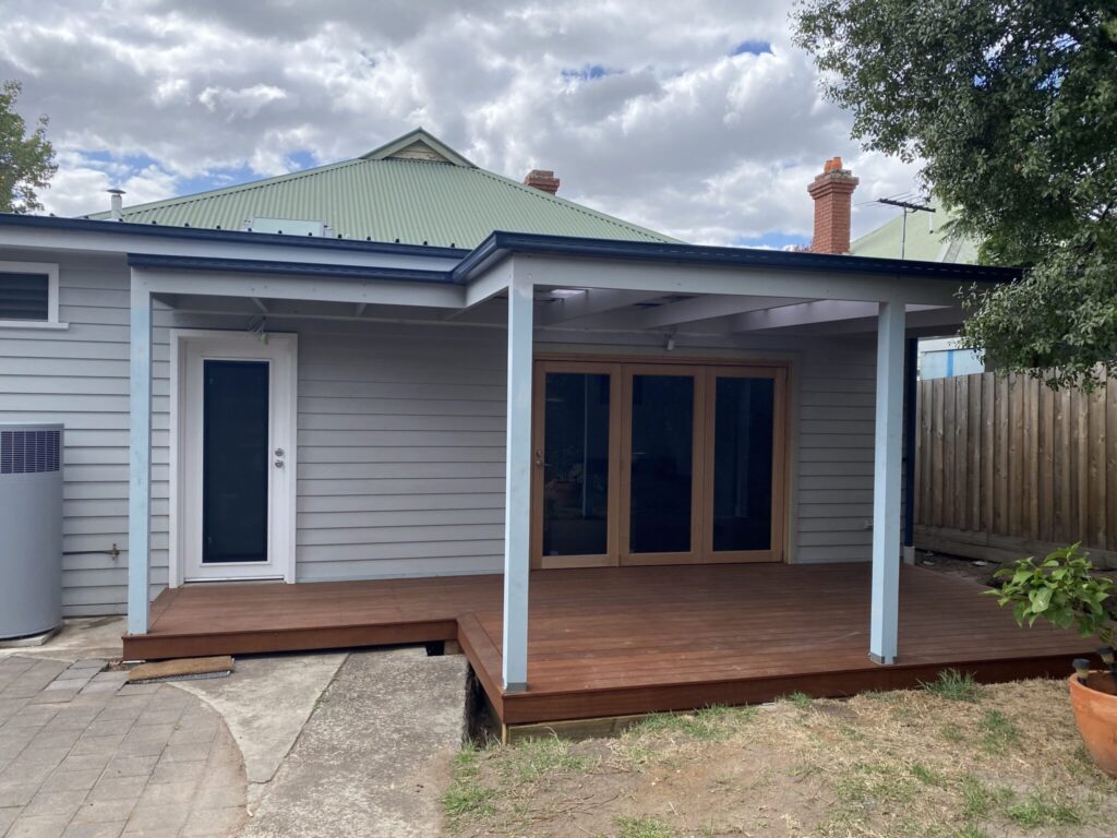 Design and construction of rear extension including a pergola, decking to a period home in Essendon.